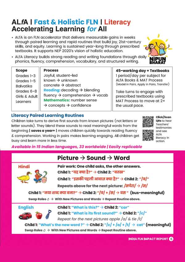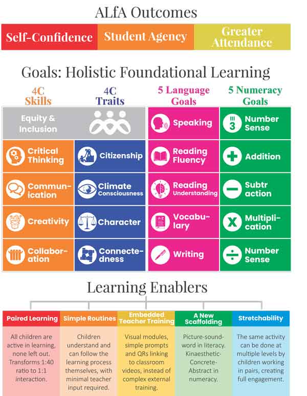 Uncover how ALfA builds foundational literacy, numeracy and life skills through simple paired learning routines.